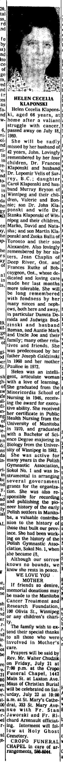 galdzinska helen obit winnipeg free press 1989-07-21